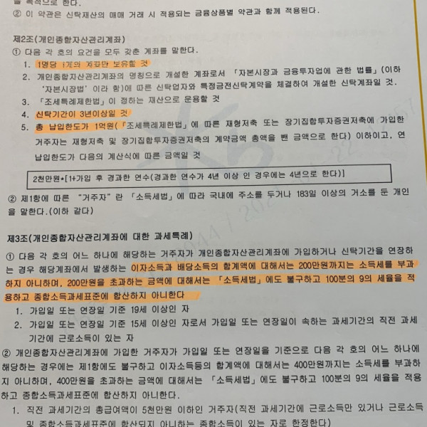 셋째, 계약기간 및 계좌 의무 보유 기간의 요건이 완화된다. 기존 일반형 기준 5년 계약기간의 경우 단축도 연장도 불가능했지만, 이제 비과세 적용을 위한 의무 계좌 보유 기간이 3년으로 완화되었고 이 기간 범위에서 계약자가 자율적으로 연장이나 해지가 가능하다. 즉 사실상 가입 기한이 없어져 항구적인 세제 혜택을 받을 수 있다.